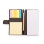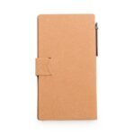 Bloco de anotações ecológico com caneta reciclada.